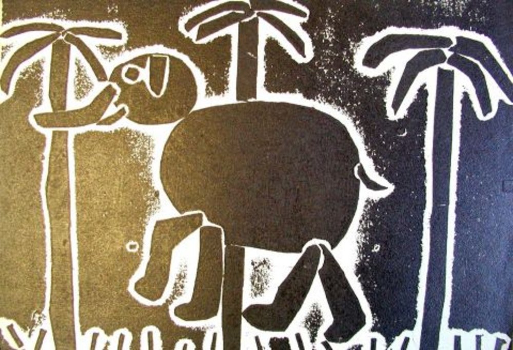 Elefant mit drei Palmen