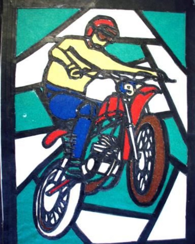Leuchtfenster: Sportler, Teil einer Gemeinschaftsarbeit: 35 Jahre DDR